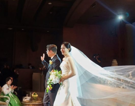 공개된 사진 속 심현섭은 결혼식에서 혼주석을 향해 손을 흔들고 있는 모습. 그의 곁에 선 아내 정영림은 밝은 미소로 하객들을 바라보고 있다.