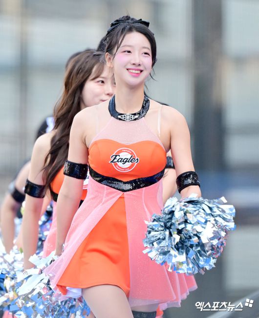 (엑스포츠뉴스 대전, 김한준 기자) 26일 오후 대전 한화생명 볼파크에서 열린 '2025 신한 SOL Bank KBO리그' KT 위즈와 한화 이글스의 경기, 우수한 치어리더가 열띤 응원을 선보이고 있다.김한준 기자 kowel@xportsnews.com
