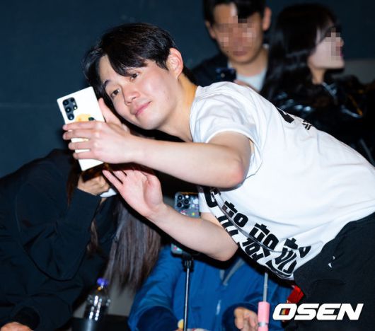 배우 류경수가 무대인사에 참여하며 팬과 셀카를 찍고 있다.2025.04.26 / rumi@osen.co.kr