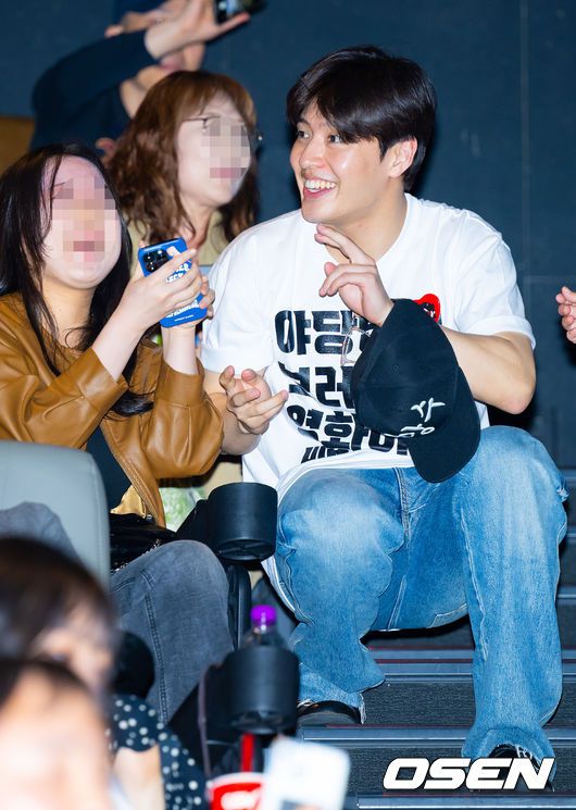 배우 강하늘이 무대인사를 하며 영화 팬과 셀카를 찍고 있다.2025.04.26 / rumi@osen.co.kr