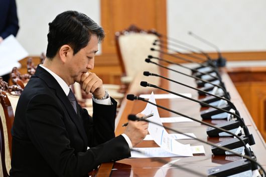 안덕근 산업통상자원부 장관이 21일 서울 종로구 정부서울청사에서 열린 경제안보전략 TF회의에 참석하고 있다. 대통령실사진기자단 |
