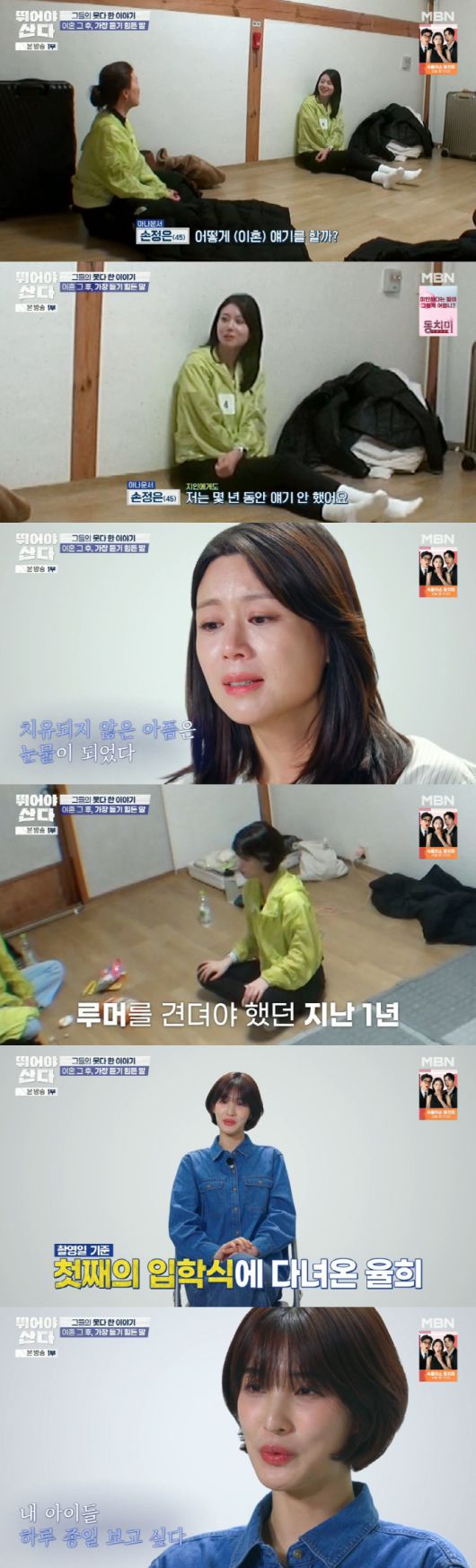 이에 손정은은 "나도 엄청 고민했다. 제일 처음에 어떻게 (이혼) 이야기를 할까 고민했다. 그래서 차라리 방송에서 얘기하는 게 낫겠다 싶었다. (이혼 사실을) 알려야겠다고 생각했다"며 "4년 동안 지인들한테도 이야기를 안 했다. 가까운 아나운서한테도 이야기 안 했다"고 고백했다.