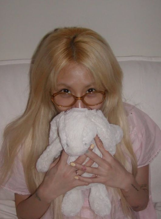 또 금발 헤어와 안경, 아기자기한 네일과 토끼 인형으로 민낯에도 자유로운 무드를 발산했다.