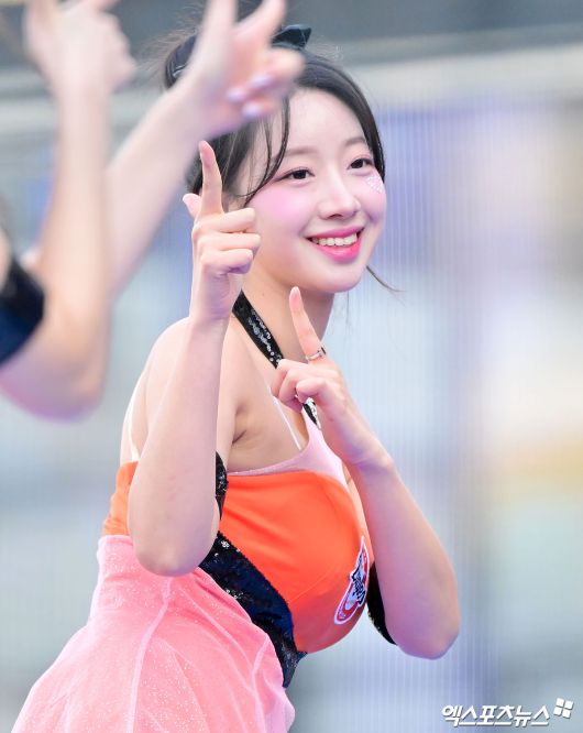 (엑스포츠뉴스 대전, 김한준 기자) 26일 오후 대전 한화생명 볼파크에서 열린 '2025 신한 SOL Bank KBO리그' KT 위즈와 한화 이글스의 경기, 한화 우수한 치어리더가 멋진 공연을 선보이고 있다.김한준 기자 kowel@xportsnews.com