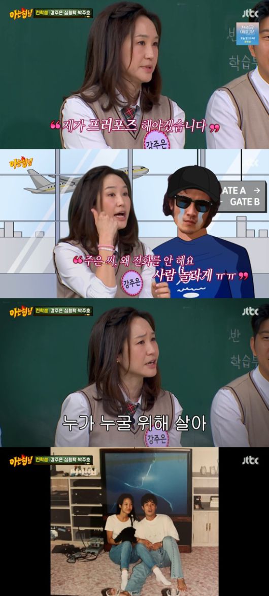 이때 최민수는 유년시절부터의 사진들과 그 뒤에 설명을 적어온 상자를 주면서 '오늘은 우리의 생일이다. 오늘부터 주은 씨가 오빠를 위해 살 수 있을까?'라는 편지를 줬다고. 여기에 강주은은 "이래서 소름 끼쳤다. 23살에 누가 누구를 위해 사냐"고 덧붙여 웃음을 안겼다.