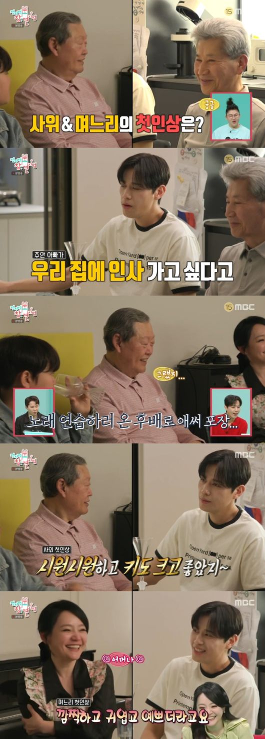 이후 사위와 며느리 첫인상이 어땠냐는 매니저의 질문에 김소현 아버지는 “시원시원하고 키도 크고 좋았지”라며 웃었다. 손준호 아버지는 “뮤지컬을 통해 며느리를 처음 봤는데 깜찍하고 예쁘더라고요. 우리 며느리를 쭉 지켜보니 굉장히 반듯하고 성실한 사람이더라고. 우리 부부가 지인들이랑 여행을 가면 ‘어머니 용돈 좀 부쳤어요. 같이 가신 분들하고 식사 좀 하세요’하고 전화가 와요. 우리 며느리가 1등”이라며 김소현에 대한 애정을 드러냈다.