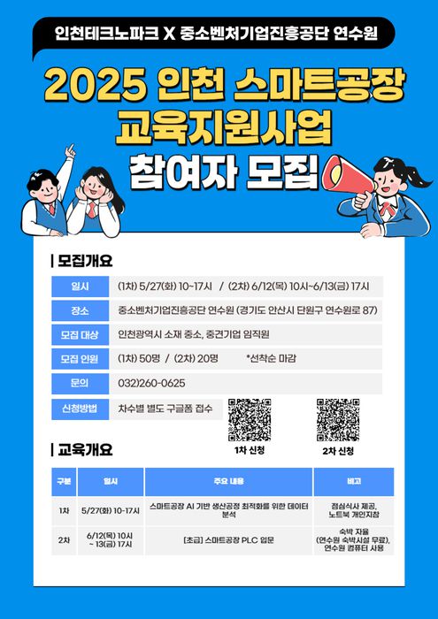 모집 대상은 인천시 소재 중소·중견기업 임직원으로, 1차 교육은 50명, 2차 교육은 20명을 선착순으로 모집한다.
