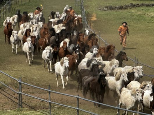 제주관광객과 도민들이 이달 19일 오후 제주도 한라산 중턱의 제주마방목지에서 제주마 100여 마리가 한꺼번에 달리고 있는 모습을 휴대전화를 이용해 촬영하고 있다. 최충일 기자 |