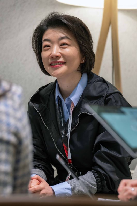 김혜인 현대자동차 HR본부장(부사장)이 지난 16일(현지시각) 미국 뉴욕 제이콥 재비츠 컨벤션 센터에서 열린 ‘2025 뉴욕 국제 오토쇼’에서 취재진과 인터뷰를 하고 있다. [현대차 제공] |