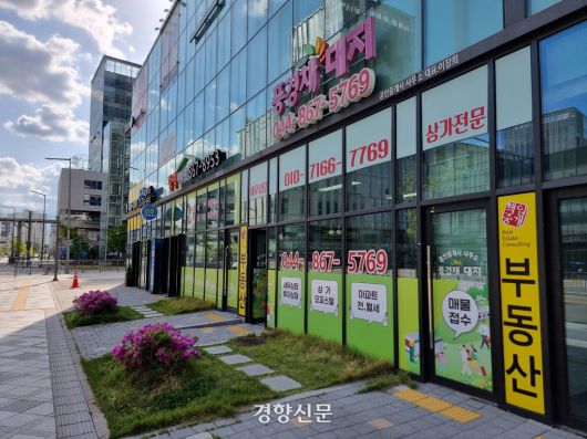 4월 21일 세종시 나성동 일대 부동산 중개업체들 모습 / 이호준 기자 |