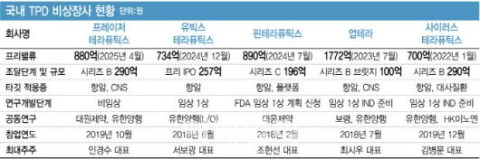 ‘순정’ TPD를 연구하는 회사는 유빅스테라퓨틱스, 핀테라퓨틱스, 사이러스테라퓨틱스, 업테라, 프레이저테라퓨틱스다. 상장사 제넥신(095700)에 흡수합병한 이피디테라퓨틱스 정도가 더 언급된다.
