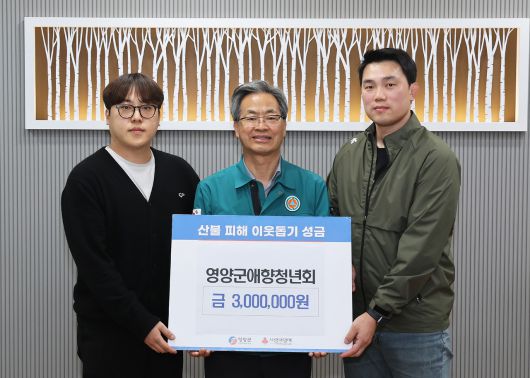 (영양=국제뉴스) 김충남 기자 = 영양군애향청년회(회장 성문기)는 4월 24일 산불로 인한 이재민 지원과 조속한 피해 복구를 돕기 위해, 오도창 영양군수에게 300만원의 성금을 전달했다. 영양군 애향청년회는 1989년 영양을 사랑하는 청년들이 지역사회에 봉사하기 위해 창립한 단체로써 청소년 선도활동, 문화재 주변 환경정화, 어린이날 행사 개최 등 다양한 봉사활동으로 지역의 발전을 위해 헌신적으로 노력하는 단체이다.