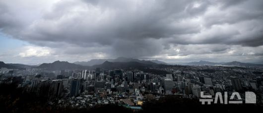 [서울=뉴시스] 정병혁 기자 = 사진은 지난해 11월 26일 서울 중구 남산에서 바라본 서울 하늘에 먹구름이 가득 끼어있는 모습. 2024.11.26. jhope@newsis.com |