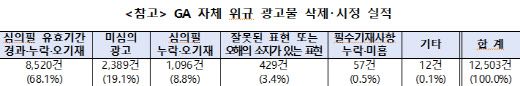 [이데일리 김국배 기자] 금융감독원이 생명보험협회·손해보험협회·보험GA협회와 함께 오는 28일부터 다음 달 16일까지 ‘불법 광고물 집중 신고 기간’을 운영한다. 앞서 금감원은 지난 3월 보험협회들과 GA 자체 광고 자율 점검·시정 캠페인을 시행한 바 있다. 이번에는 GA 업계 전반의 광고 관련 내부통제 수준을 한층 더 제고하기 위해 2차 캠페인을 진행한다. 금감원에 따르면 1차 캠페인 기간 중 18개 GA가 생·손보협회 광고 심의 규정 준수 서약서를 제출했고, 26개 GA가 참여해 총 1만 2503건의 위규 광고물을 삭제·시정했다.