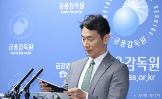 [서울=뉴시스] 조수정 기자 = 이복현 금융감독원장이 24일 오전 서울 영등포구 금융감독원에서 MBK, 삼부토건 등 자본시장 현안 관련 브리핑을 위해 발언대에 서며 자료를 보고 있다. 2025.04.24. chocrystal@newsis.com /사진=최진석 |