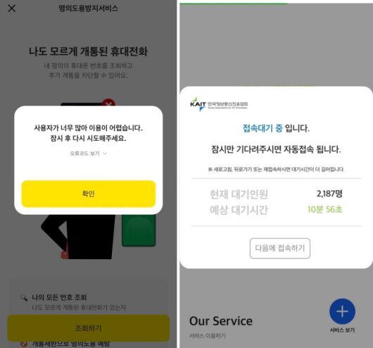 한국정보통신진흥협회(KAIT)에서 제공하는 엠세이퍼에 접속해도 접속 대기 중이라는 메시지가 뜬다. 대기자가 2000명 이상으로 많아 홈페이지 접속까지 10분 이상의 시간이 소요된다.