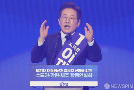 [고양=뉴스핌] 지혜진 기자 = 더불어민주당 대선 경선 예비후보인 이재명 전 대표가 27일 "김대중·노무현·문재인을 계승해 네 번째 민주 정부를 수립하겠다"고 포부를 밝혔다. '어대명'(어차피 대통령은 이재명) 체제를 확고히한 이 전 대표는 마지막 순회경선 현장에서 성남시장, 경기지사에 이어 대통령으로서도 "한사람의 최고공직자가 어떻게 희망세상을 만들 수 있는지 실천과 결과로 보여드리겠다"며 자신감 있는 모습을 내비쳤다.