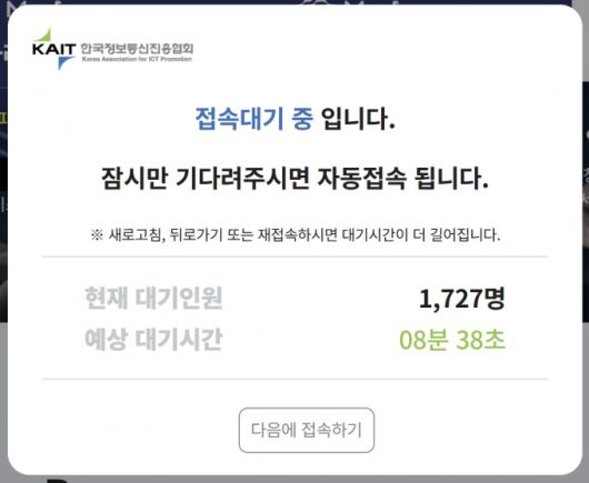 KAIT가 운영하는 엠세이퍼 홈페이지도 접속이 지연되고 있다. 오후 4시16분 현재 1700여명이 대기 중이라며 접속 대기 공지가 뜬다.