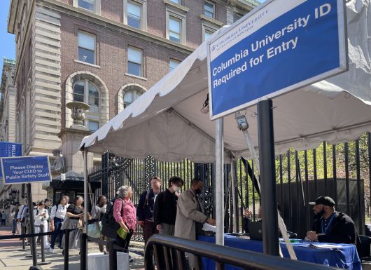 지난 24일(현지시간) 찾은 미국 뉴욕 116번가와 브로드웨이 사이에 위치한 컬럼비아대 정문은 굳게 닫혀 있었다. 미국 아이비리그 대학인 이곳은 도널드 트럼프 시대 미국 사회의 분열을 상징하듯 외부와 단절된 외딴섬과 같았다. 한쪽에서는 안전요원들이 외부인의 정문 출입을 막고 있었고, 다른 한쪽에는 컬럼비아대 학생과 교직원들이 일일이 신분증을 확인하고 교내 입장을 하느라 긴 줄이 만들어졌다. 안전요원은 "시위가 한창이던 지난해 4월부터 지금까지 1년 동안 출입을 통제하고 있다"고 설명했다. 컬럼비아대는 이날 오전 이메일을 통해 학내 시위가 예상되기 때문에 이날부터 다음 날까지 신규 외부인 출입 등록 자체를 중지한다고 학생들에게 통지했다.