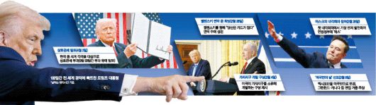 '미국의 황금기'를 기치로 내건 도널드 트럼프 미국 대통령이 29일(현지시간) 취임 100일째를 맞는 가운데 세계가 '트럼프 스톰'의 혼란과 충격에 휩싸였다. 취임 100일을 1주일여 앞둔 지난 24일 기준 트럼프 대통령이 서명한 행정명령은 139개에 달한다. 그가 취임 후 전 세계를 충격에 몰아넣었던 결정적 순간을 정리해본다.