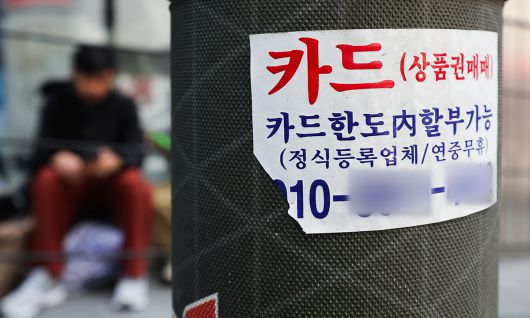서민들의 대표적인 '급전 창구'로 꼽히는 카드론 금리가 15%에 육박했다. 사진은 서울 시내 거리에 붙은 신용카드 대출 광고물. 뉴스1 |