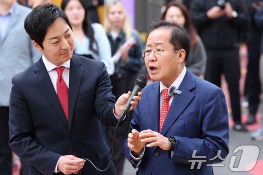홍 후보는 또 "한덕수 파고를 넘어서야지 선거에 탄력이 붙는다"며 "선거는 극적인 이벤트가 계속 나와야 국민이 모여든다. 국민이 이재명 나라 선택하면 그것은 방법이 없고, 홍준표 나라를 선택해 주면 나라를 바로 세우는 데 앞장서겠다"고 말했다.