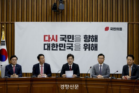 권성동 국민의힘 원내대표가 지난 25일 국회에서 열린 원내대책회의에서 발언하고 있다. 문재원 기자 |