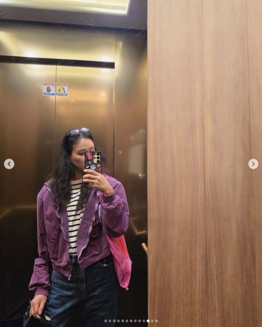 고소영은 27일 자신의 사회관계망서비스(SNS)에 엘리베이터에서 찍은 일상복 사진을 여러 장 공개했다.