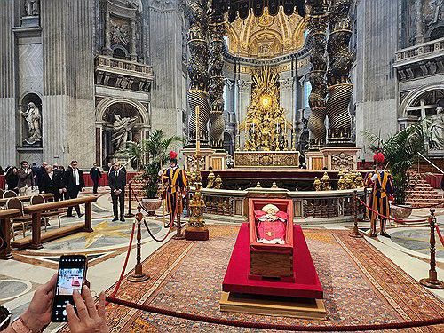이에 교황청은 조문객의 휴대전화 사용을 효과적으로 감시하지 못했다는 비판에 직면했고, 일반 조문 둘째 날인 지난 24일부터는 방문객들에게 교황의 관 앞을 지나갈 때 휴대전화를 집어넣고 사진을 찍지 말라고 말했다.