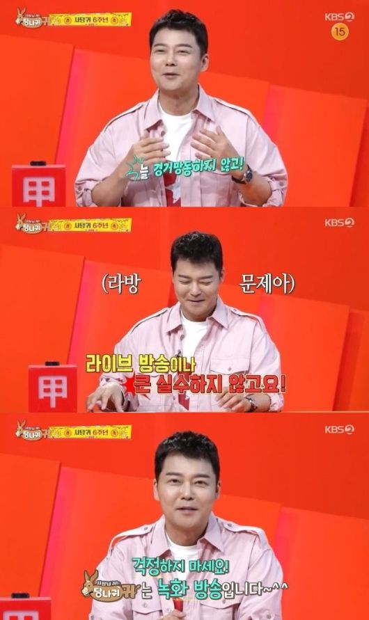 개그맨 박명수는 "라이브 방송이나 큰 실수하지 말고 오직 녹화 방송만 하라"고 충고했다. 전현무는 "걱정 마시라. 사장님 귀는 당나귀 귀는 녹화방송이다. 라이브는 이제···"라며 말을 아꼈다. 다른 출연자들도 "생방송은 안 된다"고 했다.