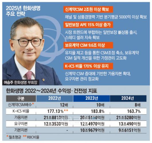 여승주 한화생명 부회장 한화생명금융서비스 제판 분리, 피플라이프 인수 결정 등으로 삼성생명도 추월하는 저력을 보였다. IFRS17 도입 이후 수혜 아닌 수혜로 실적 반등에 성공했지만 공격 영업으로 인한 저수익성 상품 판매, 미흡한 자본관리가 과제로 남고 있다.