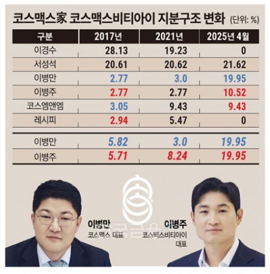 당시 코스엠앤엠은 이병만 대표, 레시피는 이병주 대표가 각각 지분 80%를 보유한 회사였다. 이 회장의 매각에 따라 이병만·이병주 대표의 실질적인 지주 지분은 각각 8.35%, 8.24%로 나란히 늘어났다.