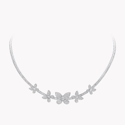 무속인 '건진 법사'가 지난 2022년 김건희 여사 선물용으로 받은 것으로 알려진 영국 하이엔드 브랜드 그라프의 대표 품목인 '파베 버터플라이 다이아몬드 목걸이'. 2022년 때 6000만원 대였으나 현재는 8000만원 이상으로 가격이 올랐다. 건진법사 전씨도 당시 6000만원 대 목걸이를 받았던 것으로 전해졌다. 다만 이 목걸이가 실제 전씨가 받은 실제 목걸이인지는 불확실하다. /그라프(graff) 공식 웹사이트 |