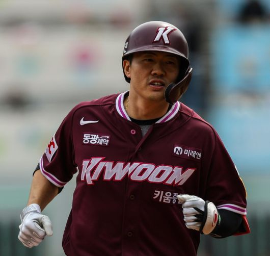 오선진이 27일 SSG와 원정에서 선제 결승 만루 홈런을 날린 뒤 그라운드를 돌고 있다. 키움 히어로즈 |