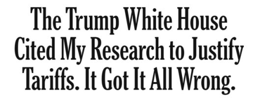미 정부가 입력한 변수 값(파라미터)이 잘못 설정했다는 비판도 있습니다. 가령 관세의 수입가격 전가율(φ)의 경우 미 정부는 0.25를 적용합니다. 기존 경제학 연구에 근거한 것이라고 설명합니다. 하지만 정부가 인용한 논문의 연구 주인공인 브렌트 네이만 교수는 이 값이 틀렸다고 지적합니다. 그는 0.25가 아닌 0.95가 돼야한다고 설명합니다. 자신의 연구 결과를 잘못 인용했다는 것입니다. 그는 NYT 기고를 통해 “무역 당국은 우리 연구를 인용했지만 논문과는 다른 결과를 언급했다”면서 “25%는 어디서 나오는 것인가? 우리 연구와 관련이 있을까? 나는 모르겠다”고 말합니다.