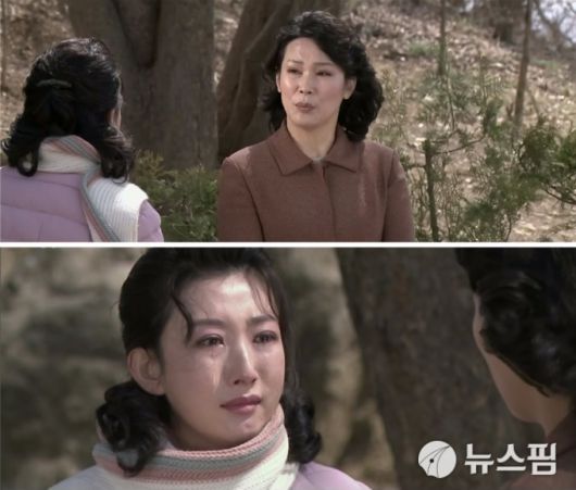 [서울=뉴스핌] 이영종 통일전문기자 = 아들과 교제 중인 여성을 만나 '격에 맞지 않으니' 헤어지라고 요구하는 엄마의 모습을 담은 북한TV드라마 '백학벌의 새봄'의 장면. 지난 16일 시작한 미니시리즈 형태의 이 드라마는 변화된 북한 세태를 그려낸 것으로 분석된다. [사진=조선중앙TV 화면 캡처] 2025.04.27 yjlee@newspim.com |
