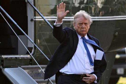 도널드 트럼프 미국 대통령이 24일(현지시간) 미국 버지니아 리즈버그 공항에 도착한 이후 손을 흔들어 보이고 있다. (사진=로이터) |