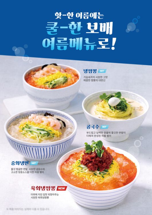 보배반점이 출시한 여름 시즌 메뉴는 시원한 냉짬뽕에 쫀득한 식감의 육회를 올린 '육회냉짬뽕' 가슴속까지 시원하고 개운한 '냉짬뽕' 시원한 냉육수에 고소한 땅콩소스를 더한 여름별미 '중화냉면' 부드럽고 담백한 콩물에 쫄깃한 면발이 더해진 '콩국수' 4종이다.