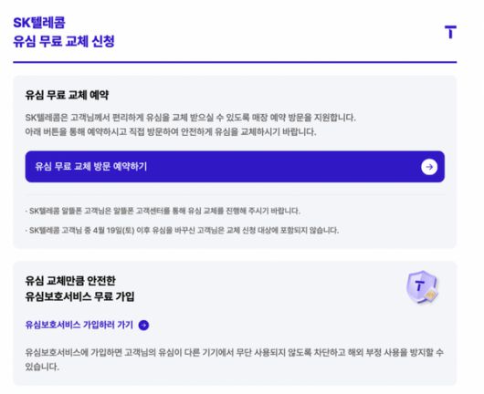 SK텔레콤(SKT)이 유심 교체를 위한 온라인 예약 시스템의 운영을 시작한다.