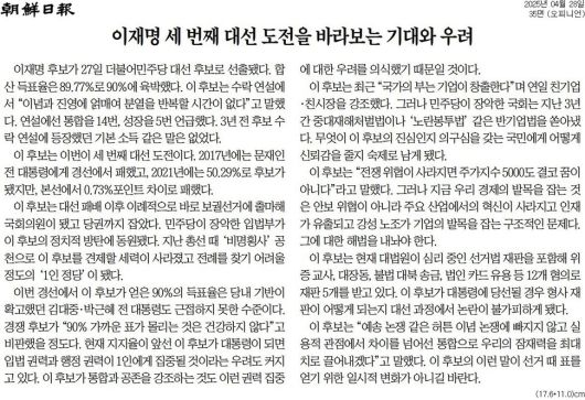 조선 = 이재명 세 번째 대선 도전을 바라보는 기대와 우려