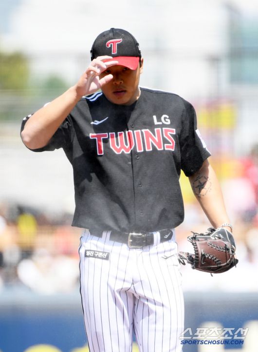 26일 광주 기아챔피언스필드에서 열린 KIA 타이거즈와 LG 트윈스의 경기. LG 이지강이 숨을 고르고 있다. 광주=박재만 기자 pjm@sportschosun.com/2025.04.26/ |