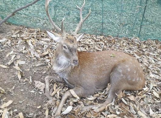 2023년 11월 6일 영통구 광교호수공원과 장안구 광교저수지 산책로에서 시민 2명을 뿔로 잇따라 공격했다가 3일 뒤 마취총을 맞고 생포된 꽃사슴의 모습. 수원시 제공 |