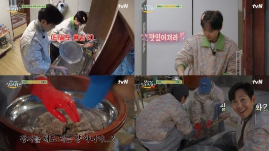 삶은 돼지 등뼈 손질과 함께 감자탕 양념 제조까지 마치자, 염정아는 본격 요리를 위해 불 앞에 섰다. 감자탕의 특대 사이즈 용량에 깜짝 놀란 이정재가 다섯 명이 먹는 양이 맞냐고 질문을 던지자, 막내 이재욱은 "저희가 다 먹습니다"라며 당연하다는 듯 답변해 폭소를 안겼다. 이정재는 "장사를 해도 되는 양 아니야?"라며 다시 한번 소스라치게 놀라는 모습으로 웃음을 더했다.