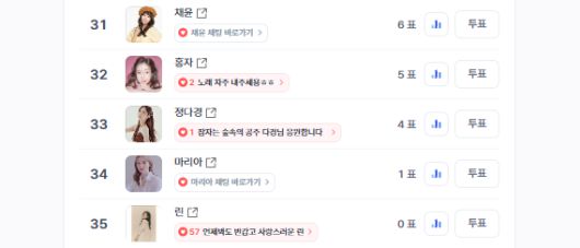한편 정다경은 28일 오후 12시 12분 기준 디시트렌드 일간 투표 '트로트의 마법, 그녀의 목소리로 내 하루가 달라졌다! 1위는 누구?' 부문에서 4표를 얻어 33위를 기록했다. 비록 상위권은 아니지만, 정다경은 특유의 사랑스러운 에너지와 친근한 매력으로 꾸준히 팬들의 지지를 받고 있다.