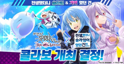 CTW 주식회사는 G123에서 호평 발매중인 웹 게임 「거미입니다만, 문제라도? 미궁의 지배자」에서 애니메이션 「전생했더니 슬라임이었던 건에 대하여」와의 콜라보 개최를 발표합니다.