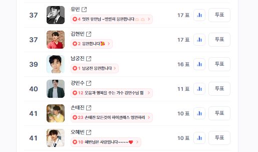 한편, 남궁진은 28일 오후 1시 35분 기준 디시트렌드 일간 투표 '무대에서 눈 못 떼는 매력! 트로트계 치명남 1위는 누구?' 부문에서 16표를 얻어 39위를 기록했다. 비록 높은 순위는 아니지만, 남궁진은 특유의 밝은 에너지와 성실한 무대 매너로 팬들의 꾸준한 사랑을 받고 있다.