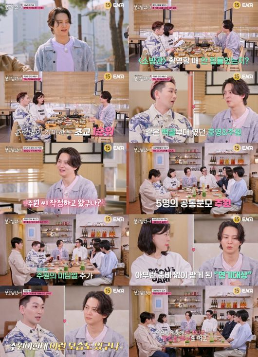 더불어 건일 역시 “(주원과) 겹 지인이 많아서 정말 열심히 하고 귀감이 되는 학생이라는 얘길 많이 들었다. 군대에서 (주원을) 만나고 ‘얼마나 FM일까?’ 너무 궁금했는데 기상 시간이 6시 30분이면 6시에 일어난다”고 놀라워했다. 이에 진웅은 “국가에서 정해준 시간을 왜 안 채우는 거야. 잠은 자야 할 거 아니냐”고 덧붙여 웃음을 자아냈다.