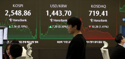 28일 오후 서울 중구 하나은행 딜링룸 전광판에 지수가 표시되고 있다. (사진=뉴시스) |