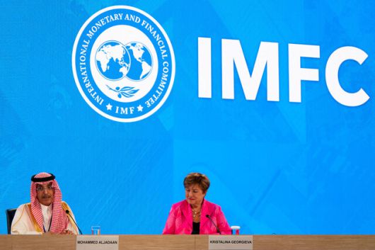 지난 25일(현지시각) 미국 워싱턴디시(D.C.)에서 열린 국제통화기금(IMF)과 세계은행 연차 총회 기자회견 모습. 로이터 연합뉴스 |