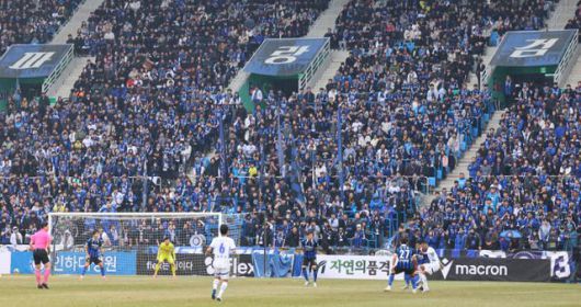 지난 2월 1일 인천축구전용경기장에서 열린 프로축구 K리그2 인천 유나이티드와 수원 삼성의 경기에서 축구 팬들이 관중석을 가득 메우고 있다. 인천=연합뉴스 |